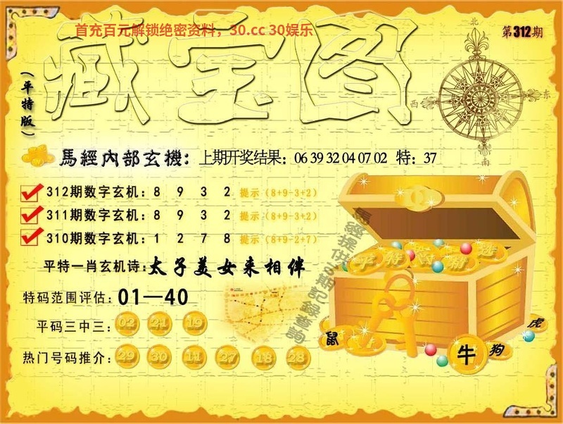 312期【太子美女来相伴】 解:太子美女来相伴,平特鼠牛 特码范围评估:01-40 |